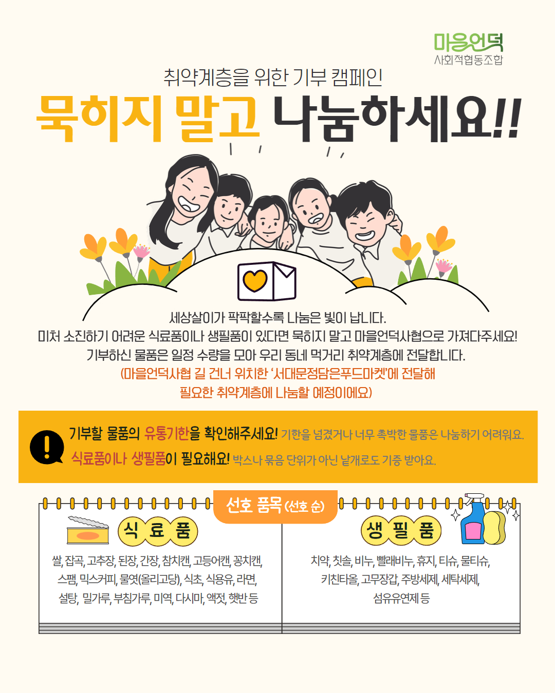 * 기부할 물품의 유통기한을 확인해주세요!