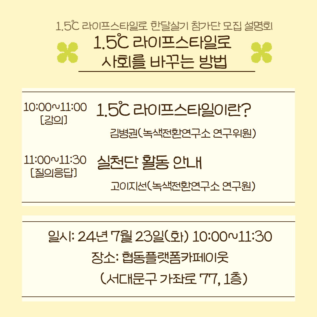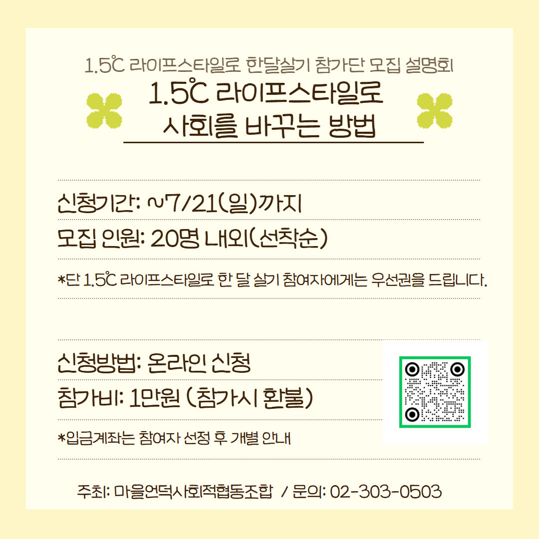 *단 1.5℃ 라이프스타일로 한 달 살기 참여자에게는 우선권을 드립니다.