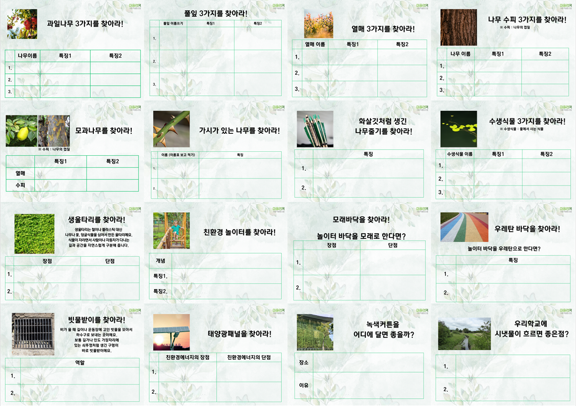 학교생태환경조사교육 교과연계형 개별수업 버전 활동지 모음 파일